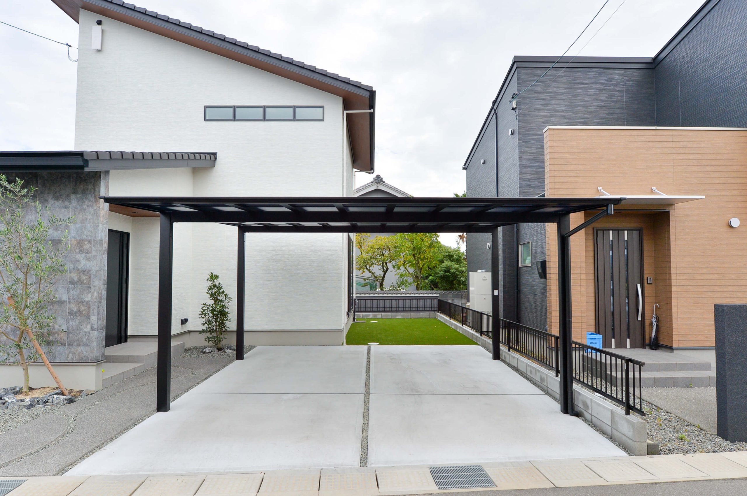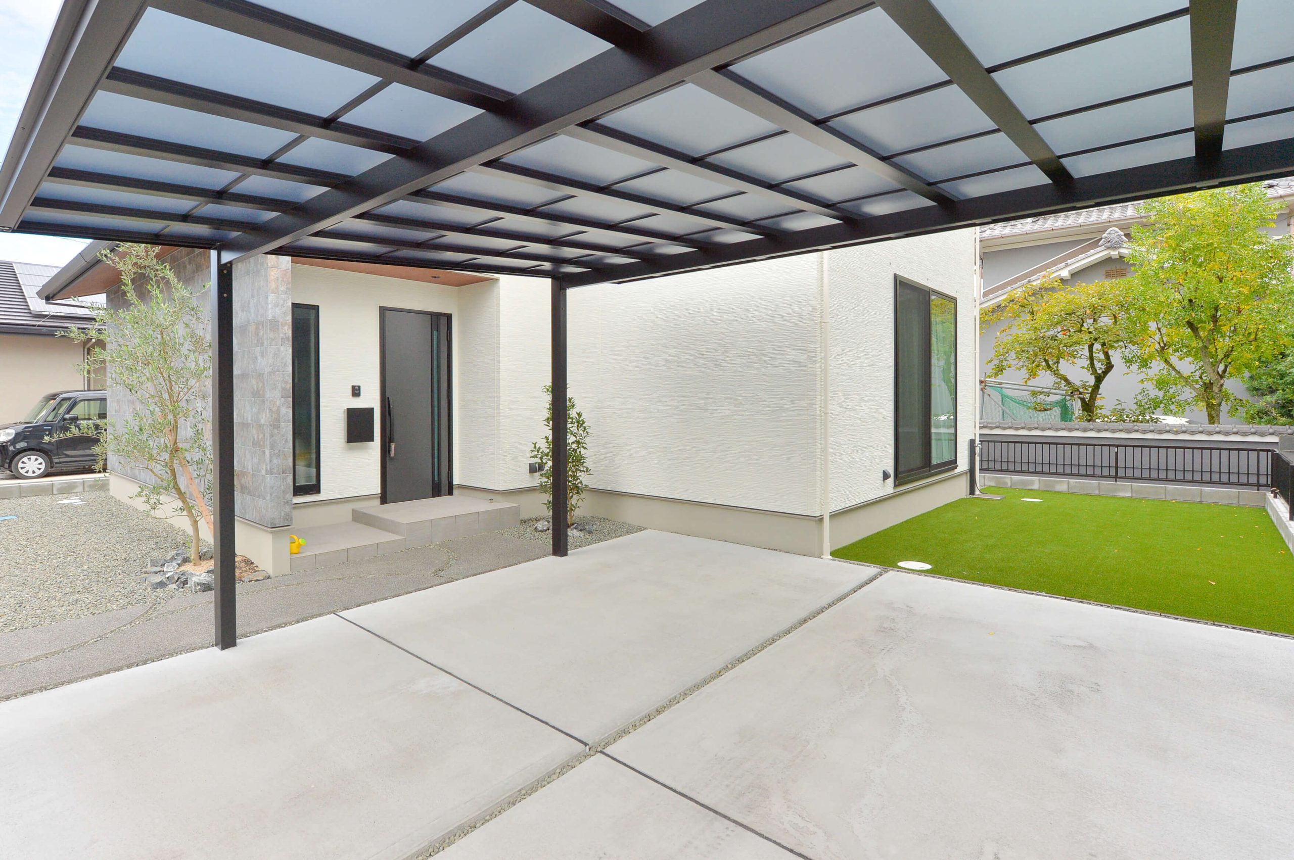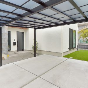 OCT 20 2025 エクステリア 【庭の実例|福山市】カーポート×モダン外構で快適に暮らす|ランドワークス 施工概要 白とグレーを基調とした外観に合わせて、外構も落ち着いたトーンで統一。 直線的でシンプルなデザインの中に 石材や植栽など自然の質感を取り入れたモダン外構です。 カーポート・アプローチ・植栽スペースを無駄なく配置し 機能性と美しさを両立しています。 施工概要【福山市 F様邸】 施工場所・エリア 福山市 施工内容・工事範囲 カーポート(LIXIL ネスカF) アプローチ(洗い出し) 人工芝 植栽/オリーブなど 施工期間・費用目安 工期:約1ヶ月 外構デザインのポイント ①建物と調和するスタイリッシュなカーポート フラット屋根のカーポートは、ブラックフレーム×ブルースモークのポリカ屋根でモダンな印象に。 シンプルな構造ながら、建物のラインと揃えることで外観全体に統一感を持たせています。 ② 素材の質感が際立つアプローチデザイン アプローチは洗い出しの先に植栽と割栗石を組み合わせ、自然な風合いと立体感を演出。 緩やかな曲線を描く目地ラインが、硬質な素材の中に柔らかさを生み出します。 玄関まわりのグレータイルとも調和し、シンプルながら印象的なアプローチ空間となりました。 ③ オリーブでこだわりの外壁にワンポイント シンボルツリーとしてオリーブを配置。 足元には割栗石を添え、自然な感じでおしゃれに。 お家の設計でこだわったお気に入りの外壁をより一層引き立てます。 ④ 人工芝でメンテナンスフリーな庭空間 お庭スペースには人工芝を敷設。 お子さまの遊び場やご家族のくつろぎスペースとして活用できる、手入れのいらない快適な庭です。 視覚的にも緑が入ることで、全体のバランスが柔らかく整いました。 ランドワークスからのご提案 外観の印象を活かしながら、使いやすさとメンテナンス性を両立することを意識しました。 シンプルな構成の中にも素材の質感や植栽の配置で動きをつけ、飽きのこないデザインに仕上がっています。 暮らしの中で「ちょうどいい使いやすさ」を感じていただける外構です。 その他、ランドワークスのエクステリア施工一覧ページ お問合せ ご用件 (必須) 新規御来店予約御来店予約(2回目以降)御見積り依頼その他(ご相談) お名前 (必須) ふりがな (必須) メールアドレス (必須) お電話番号 (必須) 郵便番号 (必須) ご住所 (必須) ご質問・お問い合わせ内容 ※必須入力情報に不足がある場合、お問い合わせが正しく送信されない場合があります。 送信ボタンをクリックする前に再度ご入力内容の確認をお願します。 ※お問合せ頂いた方には自動返信メールと、確認したスタッフより折り返しのメールをさせて頂いております。 セキュリティ設定や、迷惑メール設定をされていましたら、「info@landworks-fukuyama.com」からのメールを受信できるよう、 迷惑メール設定から解除、もしくは受信設定をして頂く様お願い致します。 ランドワークス株式会社 〒720-2412 広島県福山市加茂町下加茂102-3 TEL 084-959-5160 / FAX 084-959-5170 MAIL : info@landworks-fukuyama.com エクステリア・外構工事は カーポート・テラス・ウッドデッキの設置、植栽 (木・寄せ植え)など お庭の事ならどんなことでも対応いたします。 対応エリア 〈広島県〉福山市・尾道市・三原市 〈岡山県〉笠岡市・井原市・倉敷市 その他のエリアでも、お問合せ下さい。 ランドワークスでは、LINEで無料相談も受付中。 エクステリア・外構でお困りのことがありましたら、お気軽にご相談ください。 LINEお友達追加はこちら エクステリア, ガーデン 【庭の実例|福山市】夜の表情を引き...