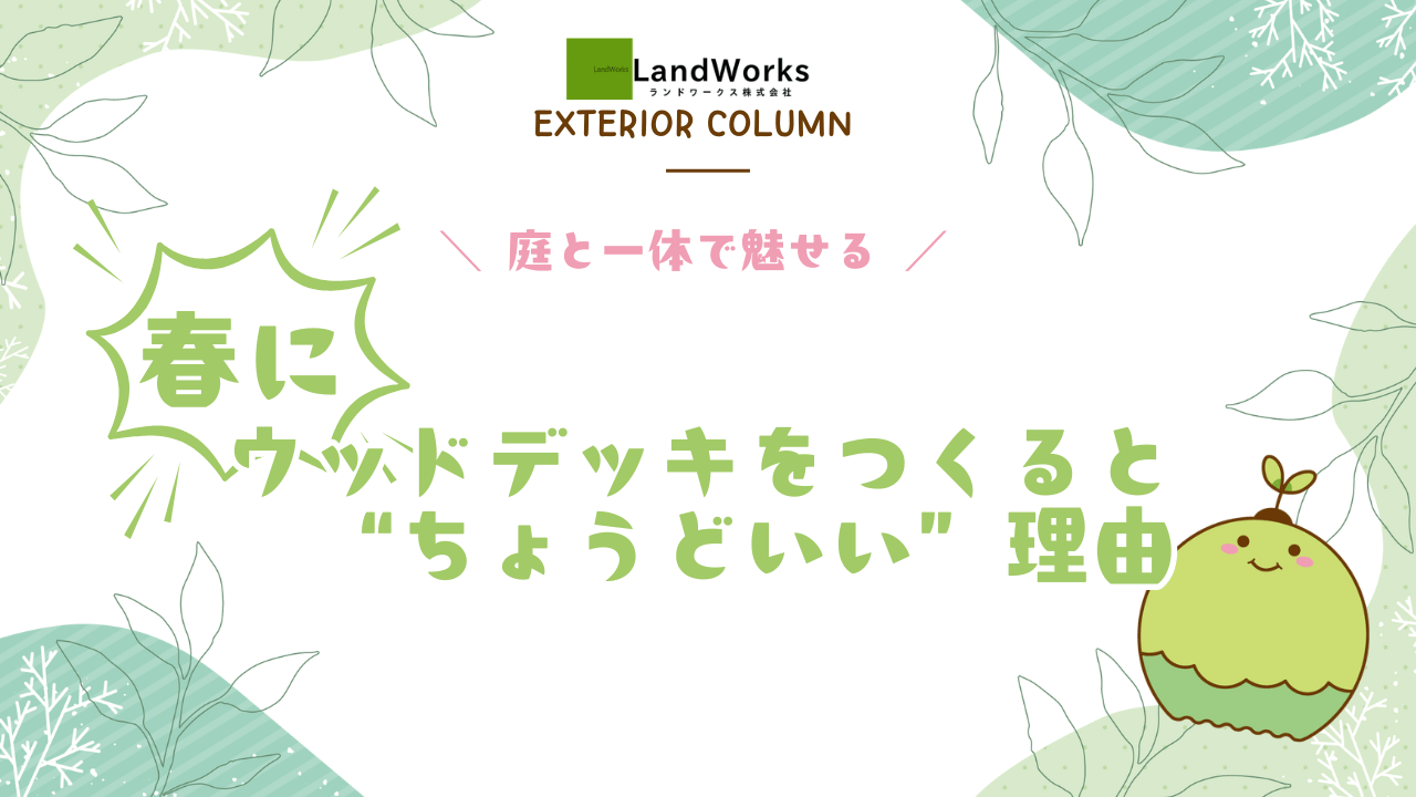 2026.02.02 春にウッドデッキをつくると“ちょうどいい”理由【外構/エクステリアCOLUMN】 ウッドデッキを検討するタイミングとして 春は実はとても“ちょうどいい季節”です。 暑すぎず、寒すぎず、暮らしの変化も感じやすい春だからこそ ウッドデッキの価値を最大限に引き出せます。 ここでは、春にウッドデッキをつくるメリットを、暮らし目線で解説します。 < 目次 > 気候が安定していて、完成後すぐ使える 夏前に日差し・動線の課題に気づける 春の生活変化と相性がいい 工期・スケジュールが組みやすい 【まとめ】“使う季節”から逆算すると、春がベスト 気候が安定していて、完成後すぐ使える 春は、直射日光がまだ強すぎず、外に出るのが気持ちいい季節。ウッドデッキが完成したその日から 朝のコーヒータイム 子どもの外遊び 洗濯物の一時干し ペットのくつろぎスペース など、「日常使い」が自然に始まります。 夏に施工すると「暑くて出られない」、 冬だと「寒くて使わない」期間が出がちですが春は“使い始めの満足感”をしっかり感じられるのが大きなメリットです。 夏前に日差し・動線の課題に気づける 春は日差しが徐々に強くなる時期。ウッドデッキを春につくることで、 夏はどこが暑くなるか 日陰は足りているか 屋根やシェードが必要か といった点を、本格的な夏が来る前に確認できます。 結果として、 「あとから屋根を追加したくなった」 「日差し対策を最初から考えておけばよかった」 といった後悔を防ぎやすくなります。 春の生活変化と相性がいい 新生活のスタート 子どもの成長 在宅時間の変化 など、暮らしが動く季節。 ウッドデッキがあることで「家の中だけで完結しない暮らし」が生まれ生活にゆとりと余白が生まれます。 特に リビングが少し手狭に感じてきた 外に出たいけど庭は使いづらい と感じているご家庭には春のウッドデッキは相性抜群です。 工期・スケジュールが組みやすい 春は天候が比較的安定しており、工事が進めやすい時期です。梅雨や台風シーズンを避けられるため 工期が読みやすい 仕上がりが安定しやすい という施工面でのメリットもあります。 「夏までに使いたい」「家族で楽しみたい」という方は、春の計画・施工が最もスムーズです。 【まとめ】“使う季節”から逆算すると、春がベスト ウッドデッキはつくることが目的ではなく 使ってこそ価値が出る外構です。 すぐ使える 夏に向けて調整できる 暮らしの変化にフィットする この3点が揃う春はウッドデッキを検討するにはまさに“ちょうどいい”タイミング。 「いつかつくりたい」と思っているなら、春のうちに一度、暮らしと一緒に考えてみるのがおすすめです。 ランドワークスの施工事例 ▶ 施工事例:洗濯動線としてはもちろん、家族のくつろぎスペースとしても活躍(福山市) ▶︎ 施工事例:中庭でバーベキューしたり、子供さんの遊びスペースなど(福山市) お問合せ ランドワークス株式会社 〒720-2412 広島県福山市加茂町下加茂102-3 TEL 084-959-5160 / FAX 084-959-5170 MAIL : info@landworks-fukuyama.com エクステリア・外構工事は カーポート・テラス・ウッドデッキの設置、植栽 (木・寄せ植え)など お庭の事ならどんなことでも対応いたします。 対応エリア 〈広島県〉福山市・尾道市・三原市 〈岡山県〉笠岡市・井原市・倉敷市 その他のエリアでも、お問合せ下さい。 ランドワークスでは、LINEで無料相談も受付中。 エクステリア・外構でお困りのことがありましたら、お気軽にご相談ください。 LINEお友達追加はこちら ご用件 (必須) 新規御来店予約御来店予約(2回目以降)御見積り依頼その他(ご相談) お名前 (必須) ふりがな (必須) メールアドレス (必須) お電話番号 (必須) 郵便番号 (必須) ご住所 (必須) ご質問・お問い合わせ内容 ※必須入力情報に不足がある場合、お問い合わせが正しく送信されない場合があります。 送信ボタンをクリックする前に再度ご入力内容の確認をお願します。 ※お問合せ頂いた方には自動返信メールと、確認したスタッフより折り返しのメールをさせて頂いております。 セキュリティ設定や、迷惑メール設定をされていましたら、「info@landworks-fukuyama.com」からのメールを受信できるよう、 迷惑メール設定から解除、もしくは受信設定をして頂く様お願い致します。 春にウッドデッキを作って後悔しないための注意点|あなたにぴったりの庭...